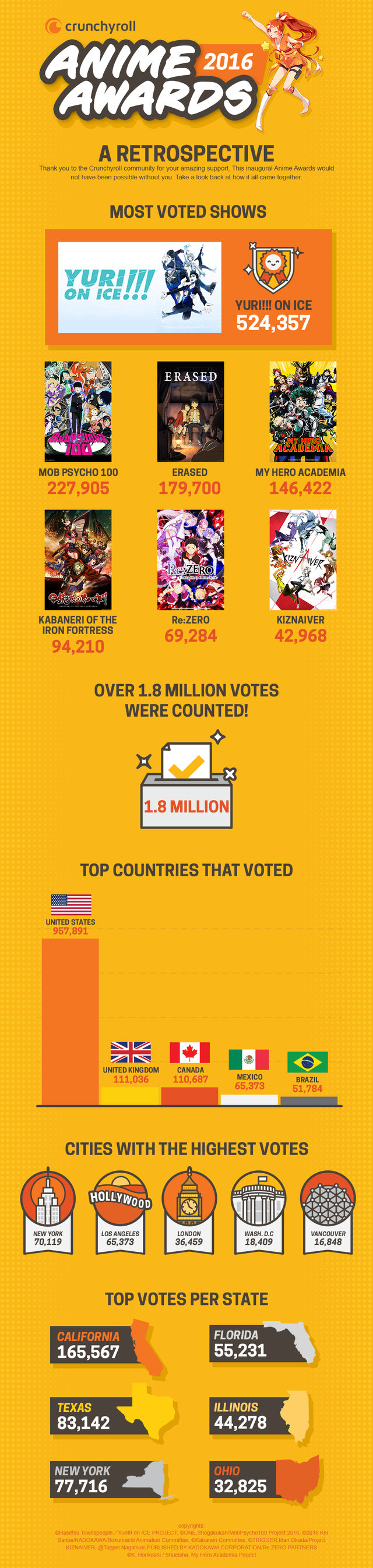 The crunchyroll anime awards are annual awards presented by anime streaming service crunchyroll that are given to recognize anime from the previous year. Crunchyroll selects twenty judges from diverse backgrounds who then create a list of six nominees within each category. Crunchyroll this year s academy awards may have neglected to put a single japanese anime among its best animated film nominees but fans of the medium got their awards season due this saturday.