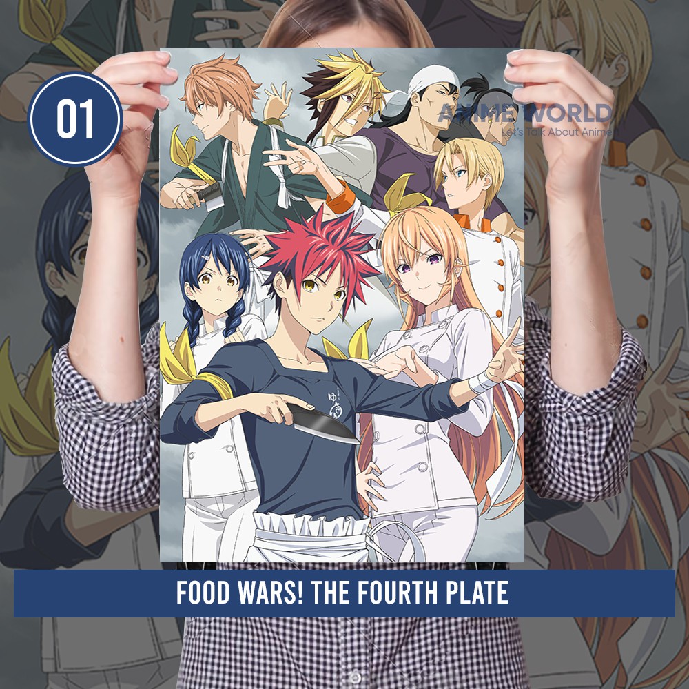 Food wars anime poster. Shokugeki no soma clock food wars anime wall art food wars poster soma yukihira cosplay manga decor gifts for boyfriend anime fan provinylart 5 out of 5 stars 10 19 80 22 00 22 00 10 off. The fifth plate also dropped a new poster for the season that seems to confirm that it will skip right over the hot spring investigation and the beach exam arcs. Shokugeki no soma 25inch x 14inch 62cm x 35cm waterproof poster no fading.