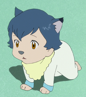 Rain is yuki s younger brother and the son of hana and wolf man.